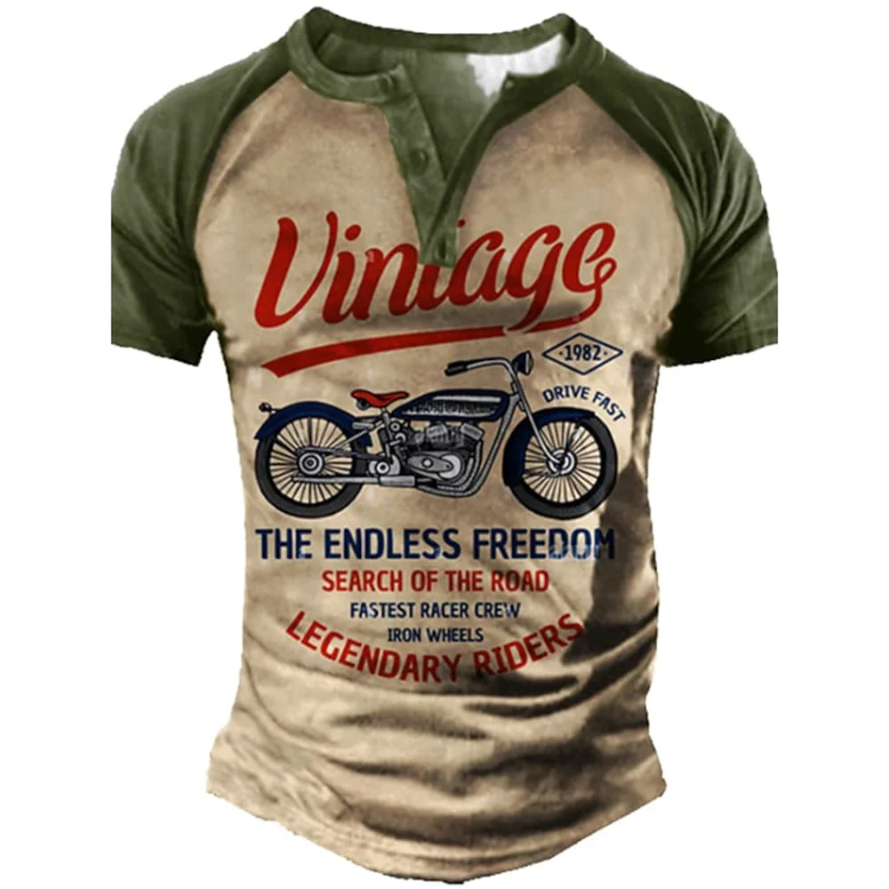 COLEÇÃO RAIZ URBANA Camiseta Henley vintage com estampa 3D , estilo casual, streetwear.