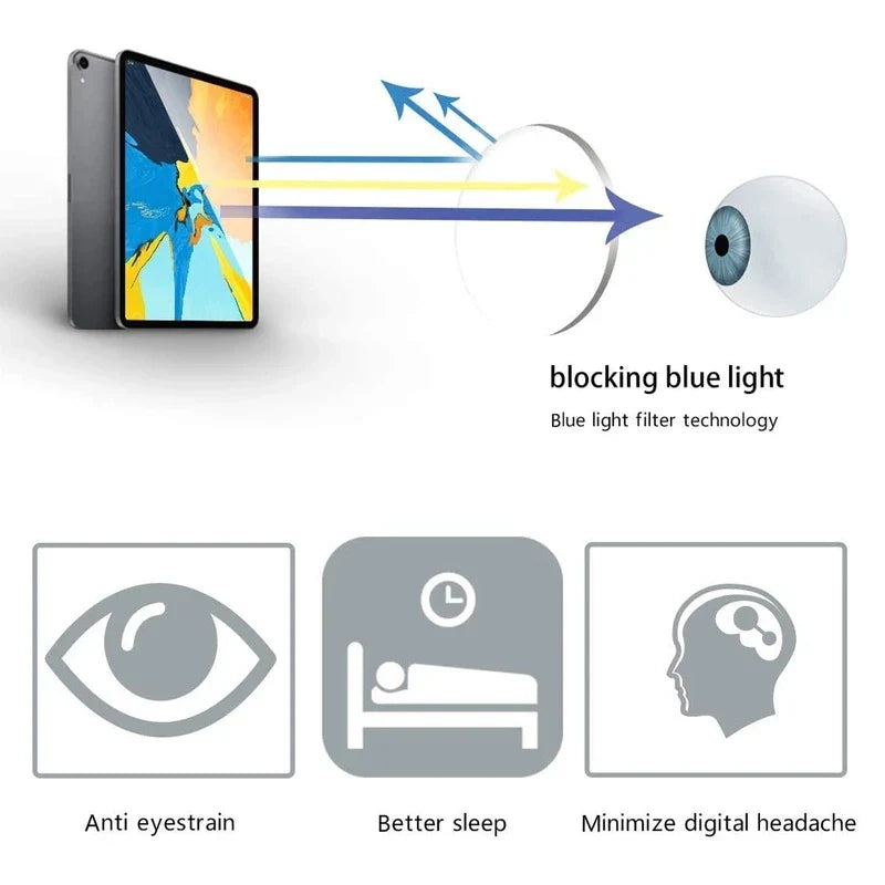 - Proteção Contra Luz Azul: As lentes bloqueiam a luz azul nociva, ideal para quem passa longas horas em frente a telas, ajudando a reduzir o cansaço e protegendo a visão.